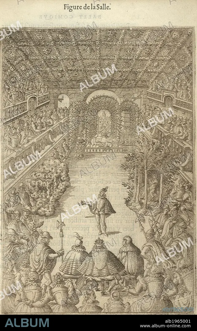 Caption: Engraving of the second scene of the Ballet comique de la Royne (Reine) in 1581, in the gallery of the Louvre. Balet Comique de la Royne ... Paris, 1582. This was the first 'ballet de cour'. It was performed for Henry III and his court. Source: Hirsch III.629.21.
