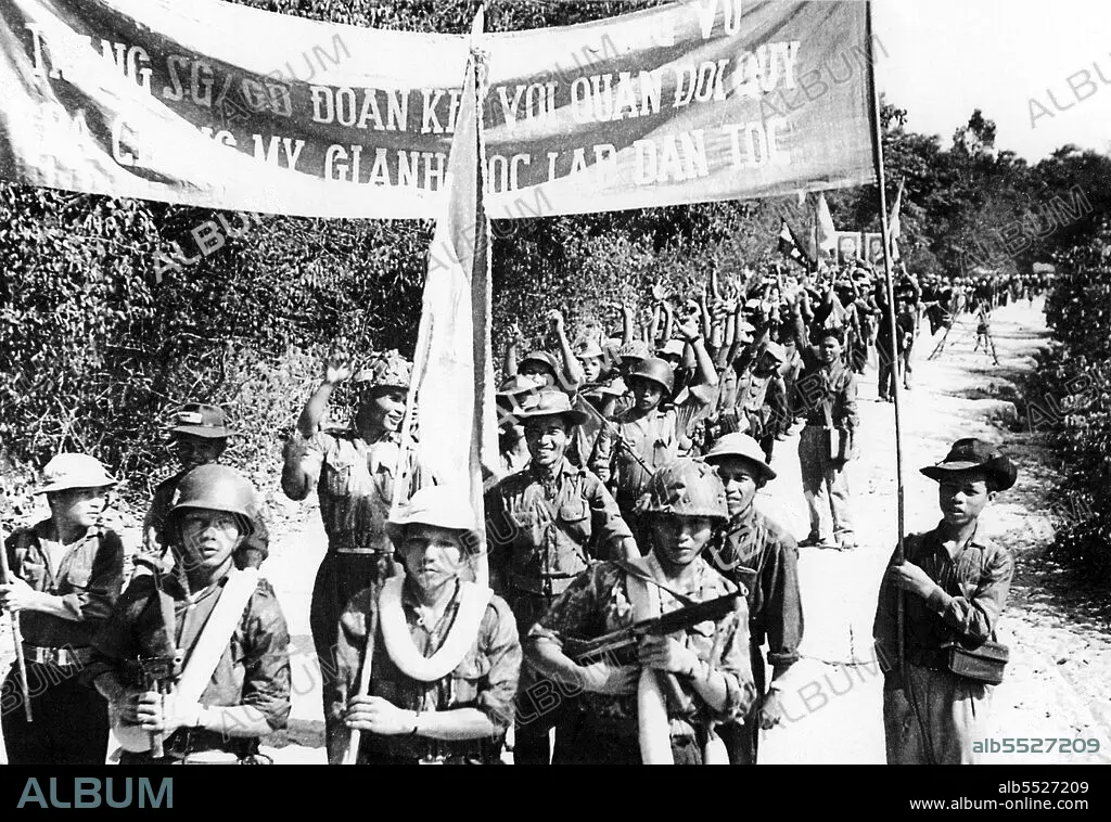 Title: Vietnam: A parade in support of the Cuban people against the US, Cu Chi, South Vietnam, Second Indochina War (Vietnam War) (1963).