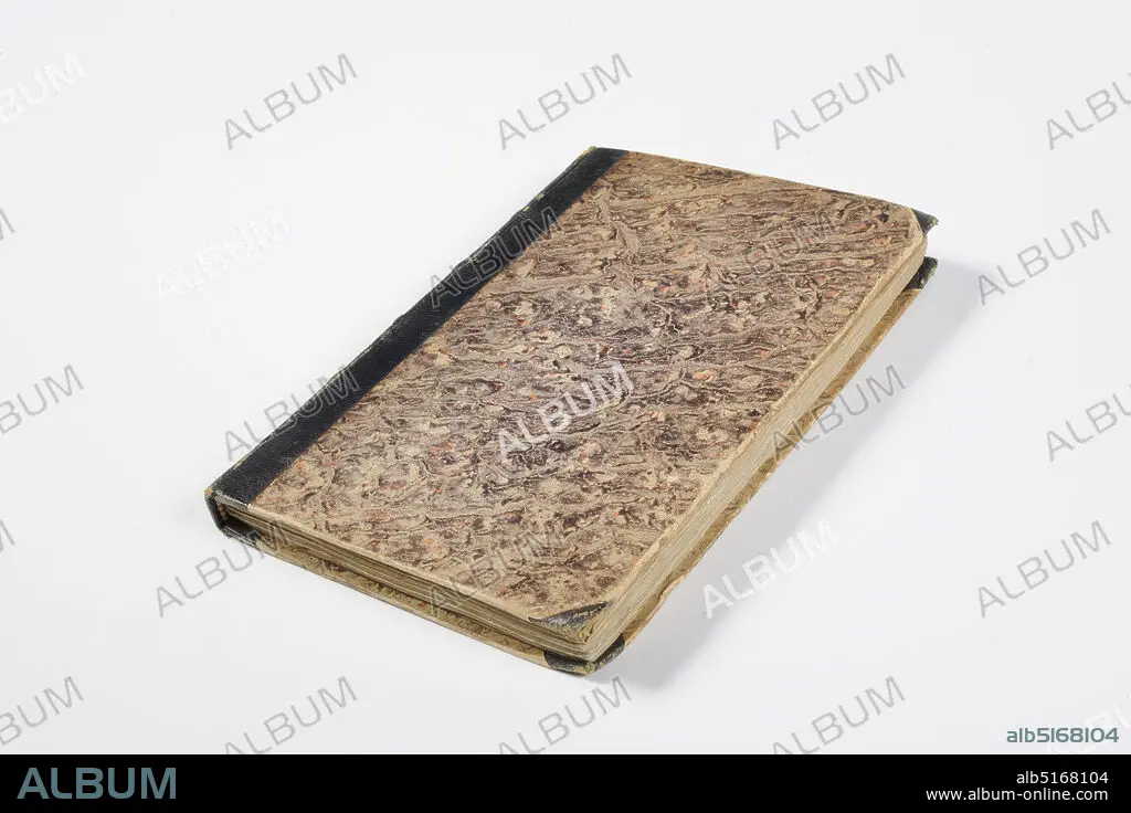 book, Thomas Aquinas Author, 15th century, ink, cardboard, paper, General: 21.7 x 14.8 x 1.8cm 217 x 148 x 18mm, Book entitled De Humanitate Christi, written by Thomas Aquinas. The book, which is bound, contains a cover with a marble motif and reinforced corners. On the back is S. Thomas the Humanit Christi with a gilded decoration and Leyden at the bottom. The interior consists of unnumbered pages with only Latin text, in black letters with red accents. On the first page, Incipit Tractactus beati Thome de Aquino te humanitate Christi is at the top. On the last page, at the bottom is a letterpress printer's mark with a lion holding two shields. On the left shield is a mark, depicted as crossed lines; on the right shield is the coat of arms of Leiden, depicted as two crossed keys. The lion is in a banderole Holla in Leiden. At the front of the book are some manuscripts written in ink, city coat of arms, lion
