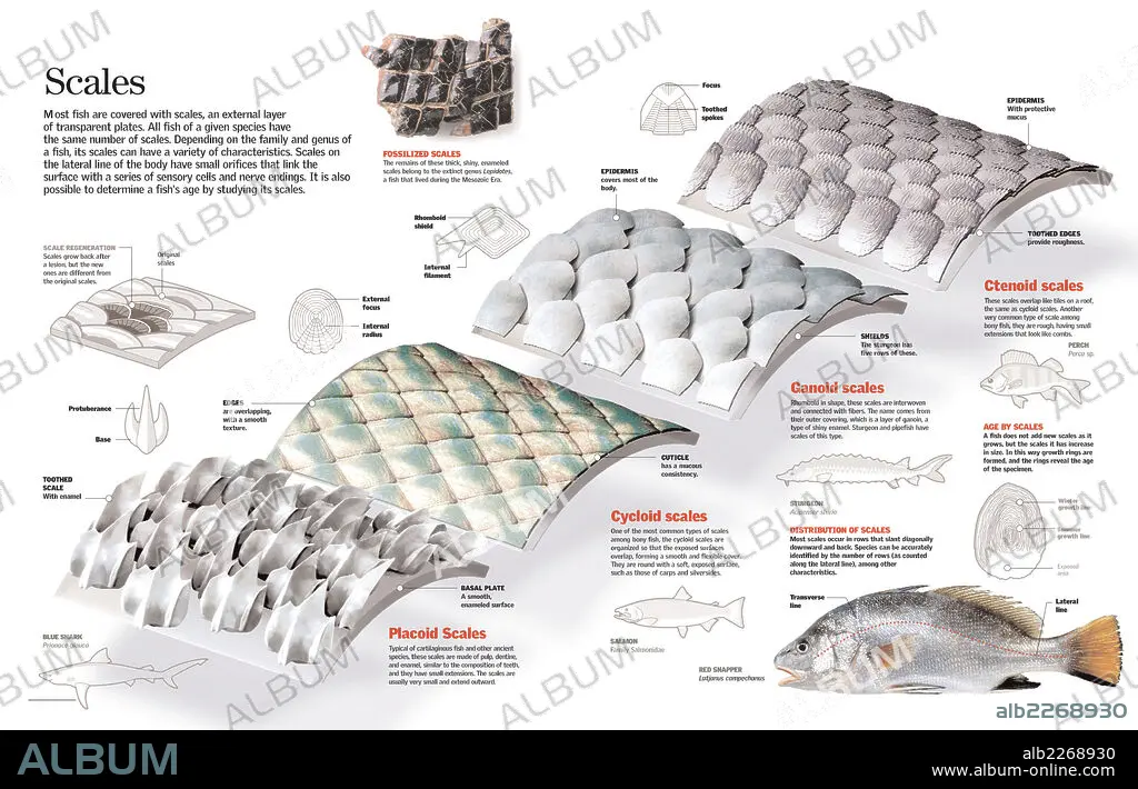 Infographics of different types of fish scales.