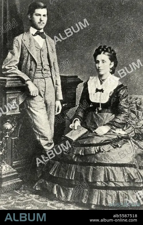 Caption: Freud, Sigmund Neurologist, founder of psychoanalysis, Freiberg (Moravia) 6.5.1856 - London. 23.9.1939. Sigmund Freud, sixteen years old, with his mother Amalia, nee Nathanson (1835-1930). Photograph, 1872.