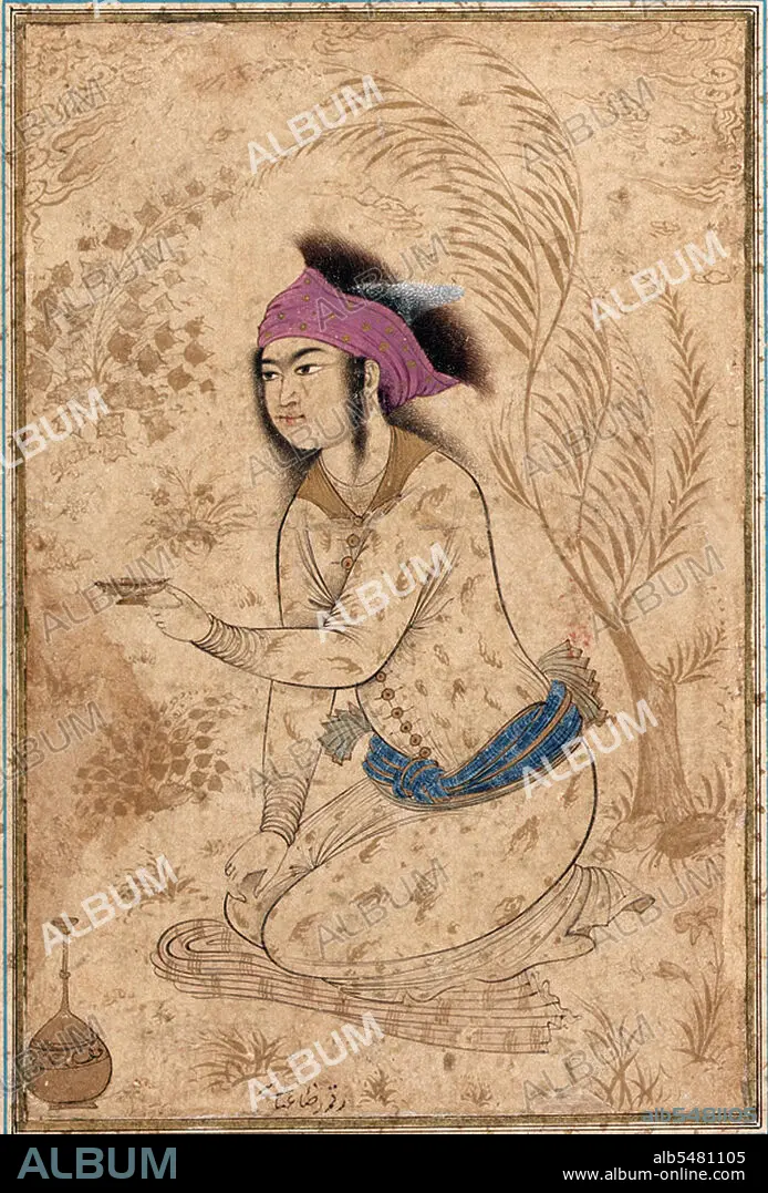 Caption: Riza Abbasi, Riza yi-Abbasi or Reza-e Abbasi, also Aqa Riza or Aqa Riza Kashani (c. 1565–1635) was the leading Persian miniaturist of the Isfahan School during the later Safavid period, spending most of his career working for Shah Abbas I (r.1587-1629). He is considered to be the last great master of the Persian miniature, best known for his single miniatures for muraqqa or albums, especially single figures of beautiful youths.