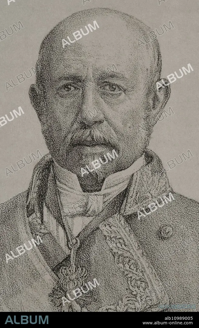 Caption: Ramón María Narváez (1799-1868). 1st Duke of Valencia. Spanish general and politician. Leader of the Moderate Party during the reign of Isabella II. Prime minister of Spain on seven occasions between 1844 and 1868. Portrait. Drawing by José Cuevas. Lithography. Detail. "Historia de la Guerra Civil y de los Partidos Liberal y Carlista" (History of the Civil War and the Liberal and Carlist parties). Volume V. 1869.