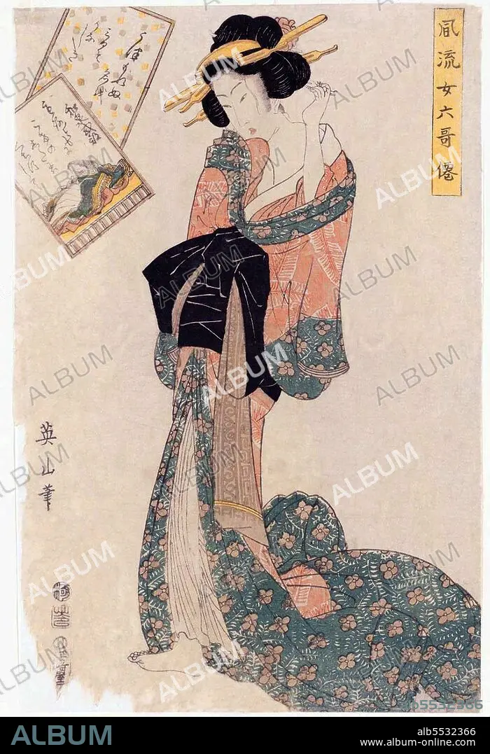 Title: Japan: Izumi Shikibu (10th-11th century), mid-Heian Period Japanese poetess. From the series 'Six Poetic Fashionable Female Immortals' (Furyu Onna Rokkasen), Kikugawa Eizen (1787-1867),1811
