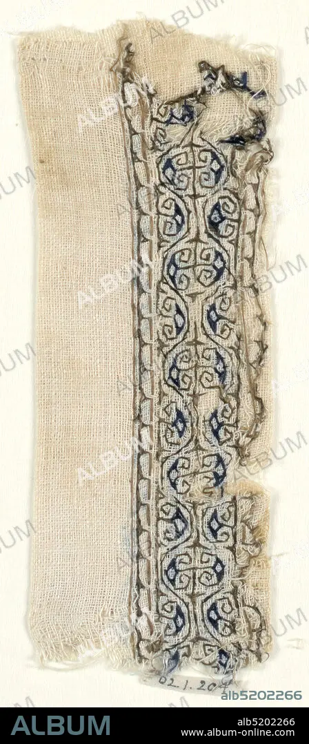 Band, Embroidery using silk threads on plain weave linen., Embroidered band of scroll-work in brown and blue., 13th century, embroidery & stitching, Band.