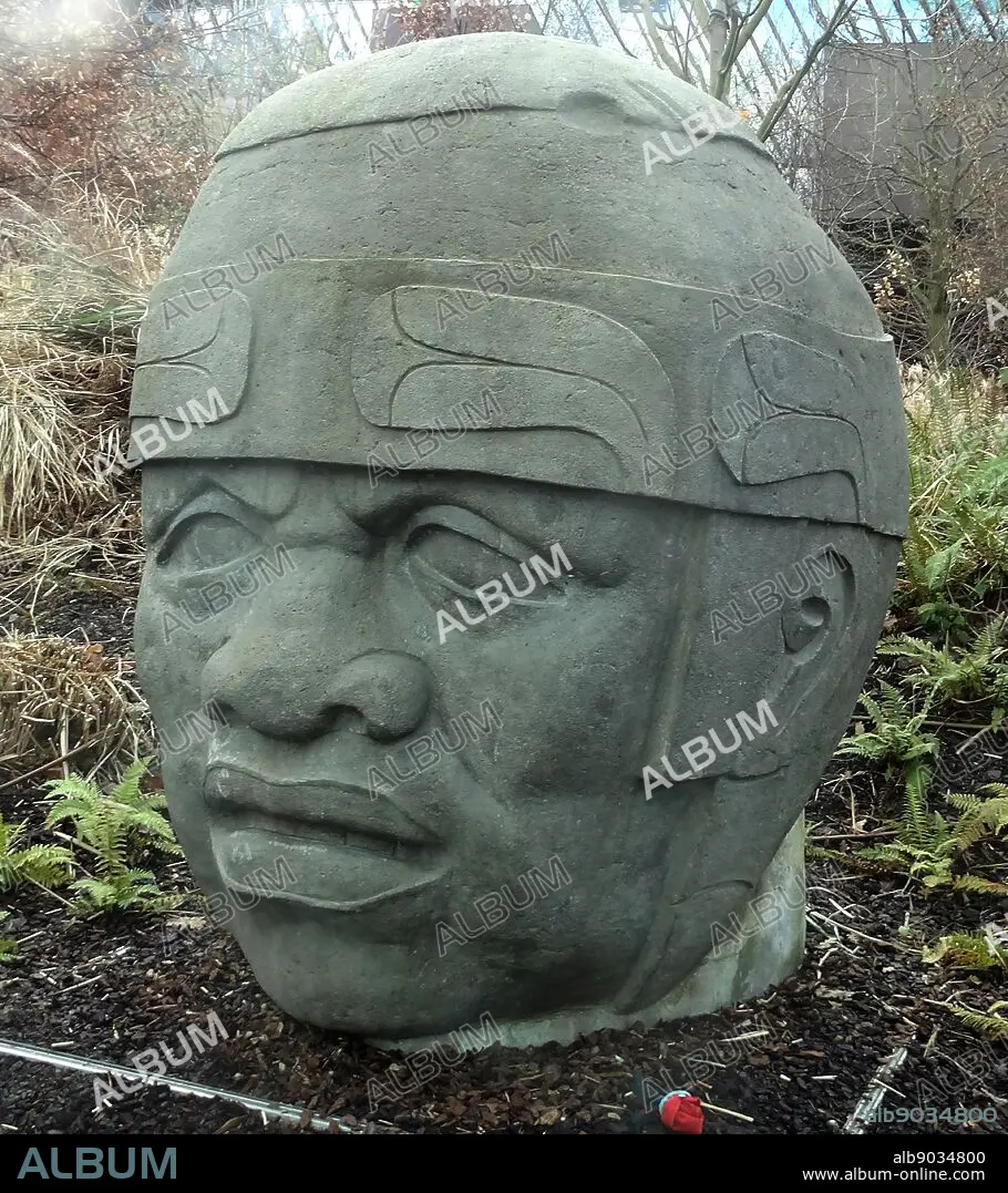 Caption: Olmec stone colossal head (cast copy by Ignacio Perez Solano). The colossal sculpture is seventeen feet tall and was a gift from the government of Veracruz, a state in south-eastern Mexico. Seventeen large heads are believed to come from the Olmec.