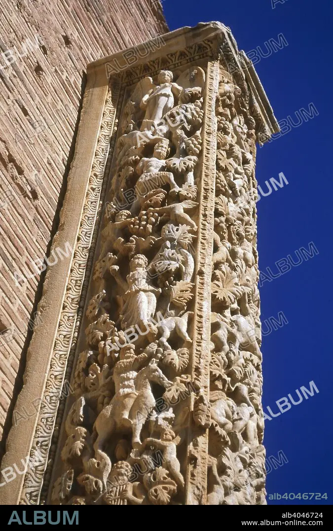 Pilasters of the Severan Basilica, Leptis Magna, Libya, 216 AD. Detail of carving on the temple built by the Libyan-born Roman emperor Severus (Lucius Septimius Severus) (146-211 AD).
