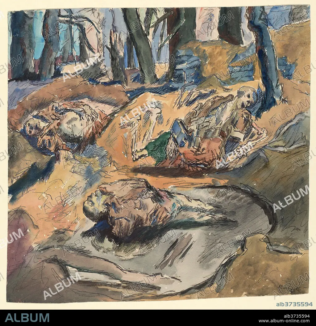 RENÉ BEEH. Dead Scottish Soldiers on the Battlefield near Ypres. Dated: 1916. Dimensions: sheet: 33.5 x 35 cm (13 3/16 x 13 3/4 in.). Medium: watercolor with pen and black ink on wove paper.
