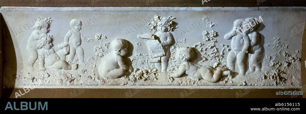 MARIANO BENLLIURE Y GIL. RELIEVE-NIÑOS JUGANDO-MARMOL 67X247 CM