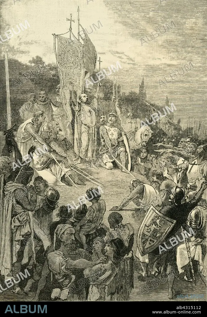 Caption: 'Peter the Hermit Preaching the First Crusade', (1095-1099), 1890. Peter the Hermit (1050-1115) priest of Amiens and key figure during the First Crusade, a military effort to recapture the Holy Land for Pope Urban II for the Byzantine Empire. From "Cassell's Illustrated Universal History, Vol. III - The Middle Ages", by Edmund Ollier. [Cassell and Company, Limited, London, Paris and Melbourne, 1890. ]