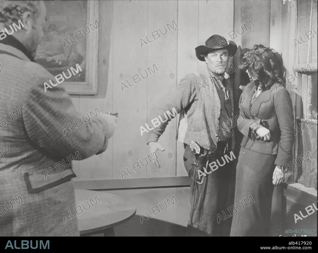 ANITA LOUISE, BURL IVES and JACK LAMBERT in DAY OF THE OUTLAW, 1959, directed by ANDRE DE TOTH. Copyright SECURITY PICTURES, INC.