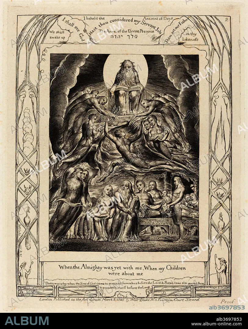WILLIAM BLAKE. Satan Before the Throne of God. Dated: 1825. Dimensions: plate: 21.6 x 17.2 cm (8 1/2 x 6 3/4 in.) sheet: 43.2 x 33 cm (17 x 13 in.). Medium: engraving on India paper.