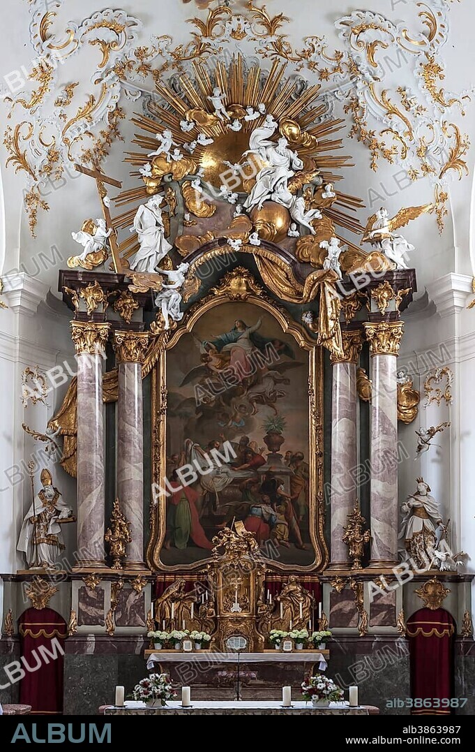 High altar in the late Baroque monastery church, Schäftlarn, Upper Bavaria, Germany, Europe.