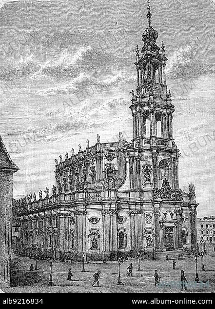The Catholic Court Church in Dresden in 1875, Saxony, Germany, Historical, digitally restored reproduction from a 19th century original, Europe