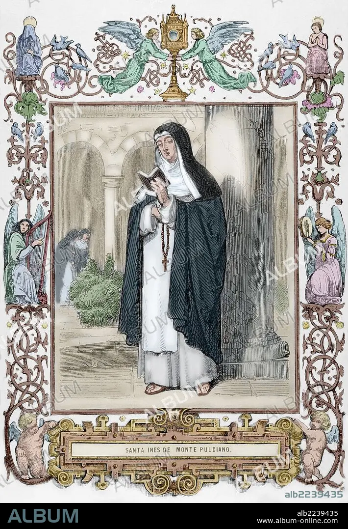 Saint Agnes of Montepulciano (1268-1317). Dominican prioress. Engraving by Capuz. The Christian Year, 1852. Colored.