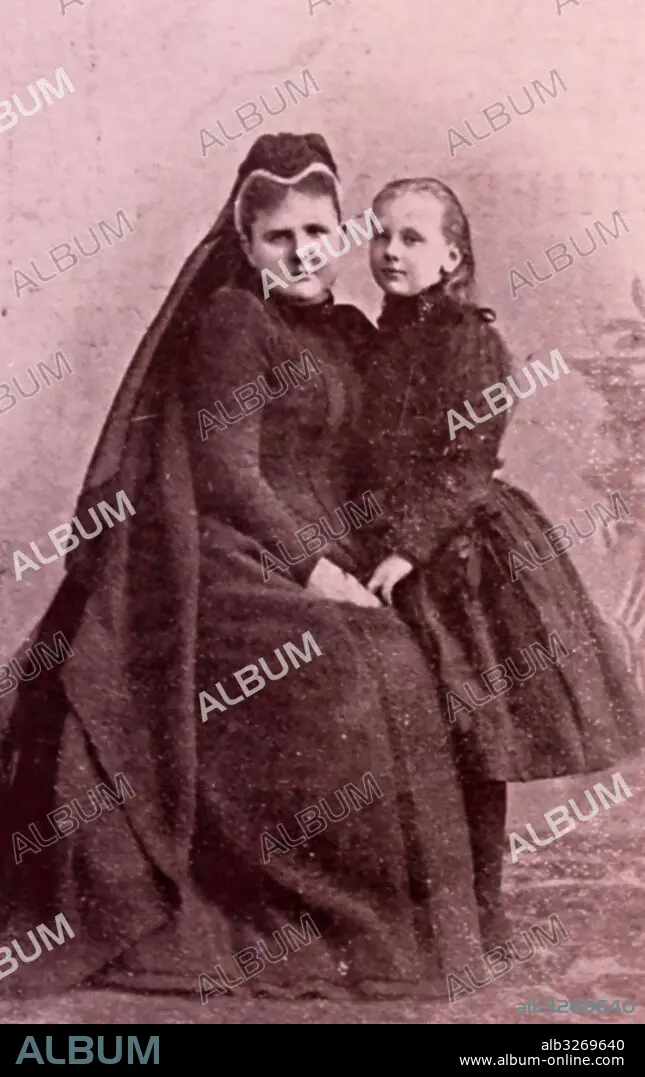 Caption: Portrait of a young Princess Wilhelmina of the Netherlands (1880-1962) who later became Queen of the Kingdom of the Netherlands, with her mother Emma of Waldeck and Pyrmont. Dated 19th Century.