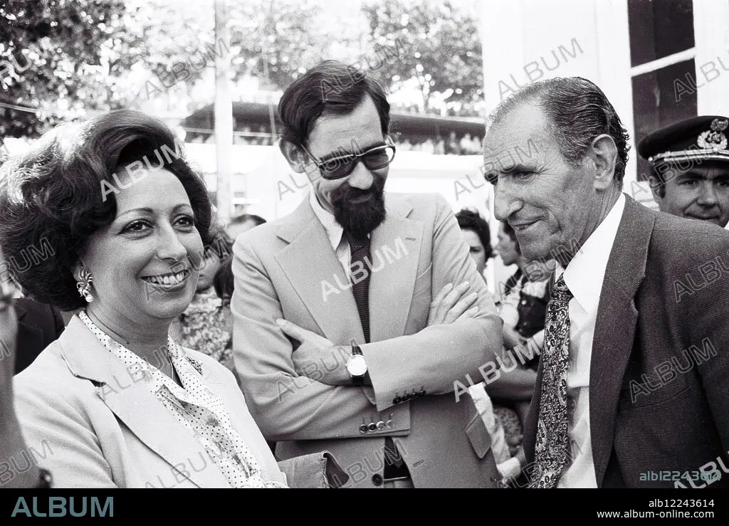 Caption: Miguel Torga, portuguese writer, with Dra. Manuela Ramalho Eanes and Alvaro Barreto, at the Harvest Fair - Régua, September 1979 (Marques Valentim / Atlântico Press)