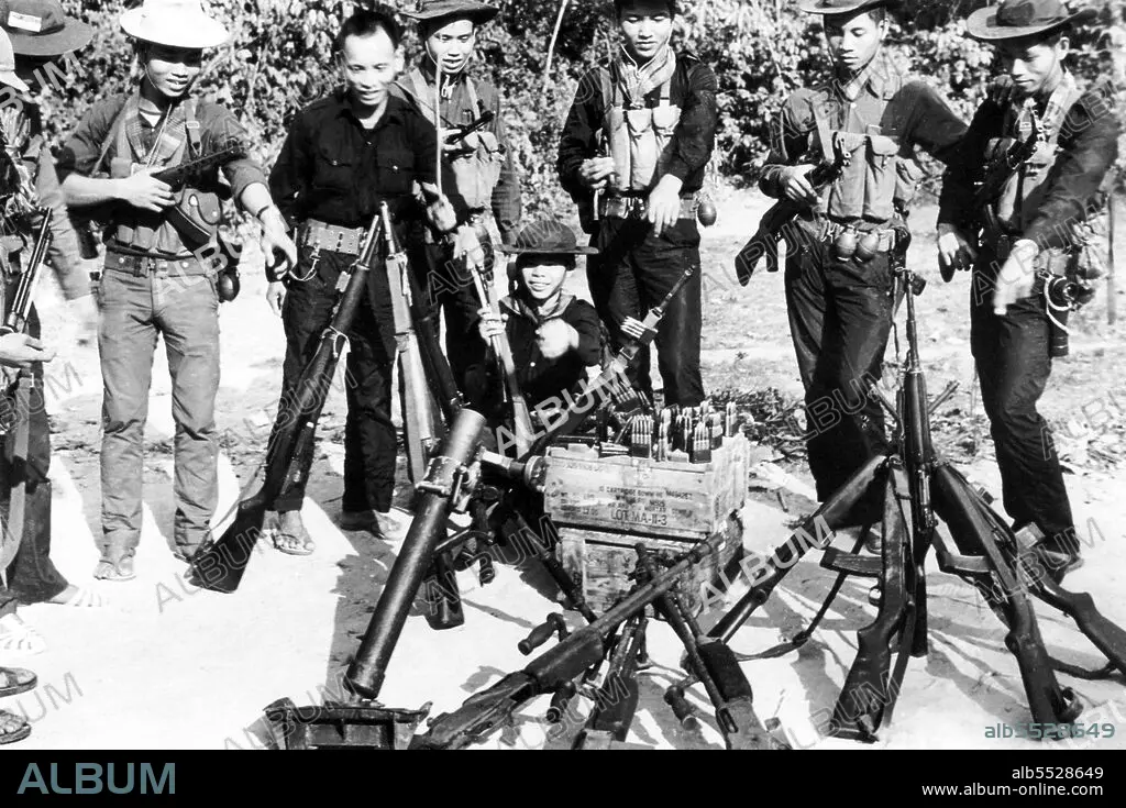 Title: Vietnam: Captured US weapons on display, Cu Chi, South Vietnam, Second Indochina War (Vietnam War) (1968)