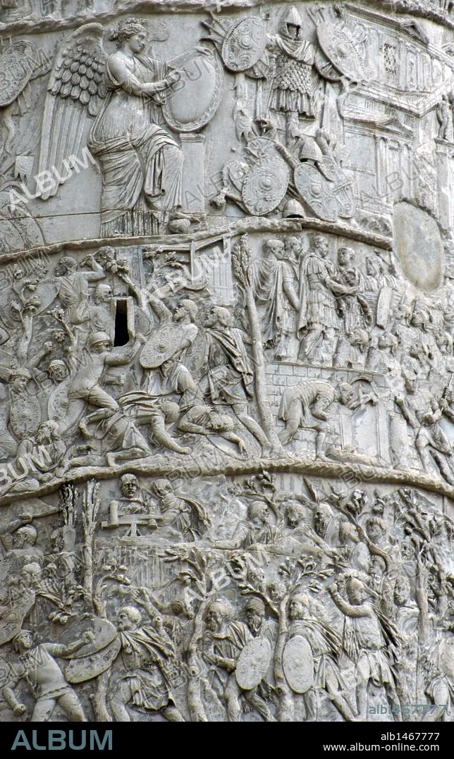 ARTE ROMANO. ITALIA. COLUMNA TRAJANA, erigida en el 113 para conmemorar la victoria del emperador sobre los Dacios (101-106). Detalle de los RELIEVES. FORO DE TRAJANO. ROMA.
