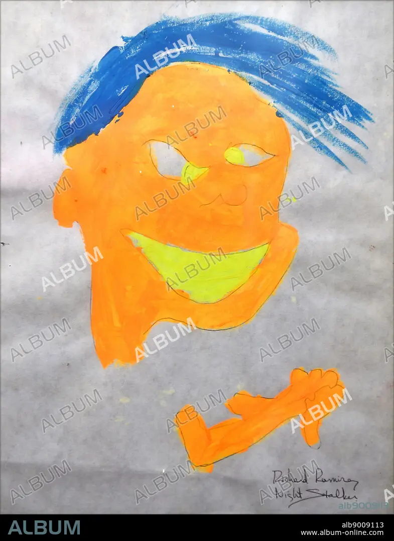 Illustration by Ricardo Richard Ramirez (1960 - June 7, 2013), dubbed the Valley Intruder, as his attacks were first clustered in the San Gabriel Valley, and the Night Stalker, was an American serial killer, serial rapist, kidnapper, child abuser, and burglar, convicted in 1989.