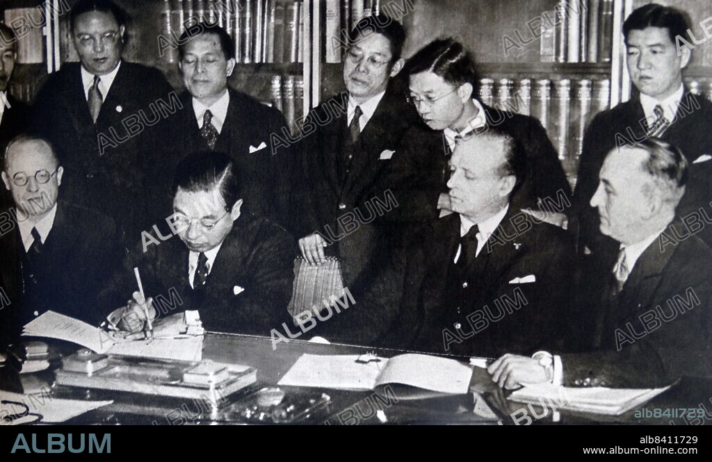 Japan's ambassador Hiroshi Oshima in Berlin with German Minister of Foreign Affairs Joachim von Ribbentrop. Baron Hiroshi Oshima (April 19, 1886 - June 6, 1975) was a general in the Imperial Japanese Army, Japanese ambassador to Germany before and during World War II. Joachim von Ribbentrop (30 April 1893 - 16 October 1946) was a German politician who served as Minister of Foreign Affairs of Nazi Germany from 1938 to 1945