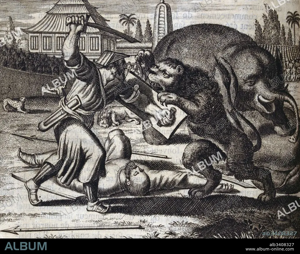 Illustration of beast from voyages made to Persia and India 1727, by Johan Albrecht de Mandelslo (1616–1644). seventeenth-century German adventurer, who wrote about his travels through Persia and India.
