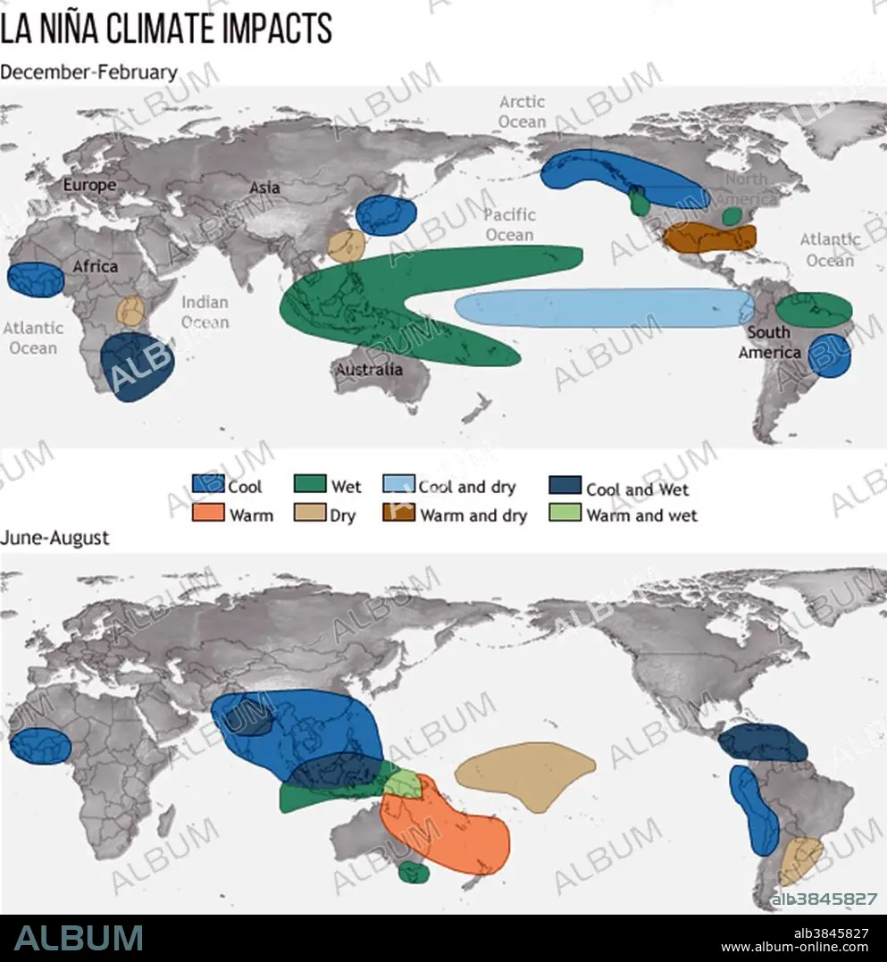 Caption: El Niño and La Niña are the opposite phases of ENSO, which is short for El Niño-Southern Oscillation. Operating in the tropical Pacific Ocean, ENSO is Earth's singlest most influential natural climate pattern. El Niño and La Niña alternately warm and cool large areas of the tropical Pacific - the world's largest ocean - which significantly influences where and how much it rains there. The primary location of moist, rising air is centered over the central or eastern Pacific during El Niño and over Indonesia and the western Pacific during La Niña. Like a boulder in a stream, this relocation disrupts the atmospheric circulation patterns that connect the tropics with the middle latitudes, which in turn modifies the mid-latitude jet streams. By modifying the jet streams, ENSO can affect temperature and precipitation across the United States and other parts of the world.