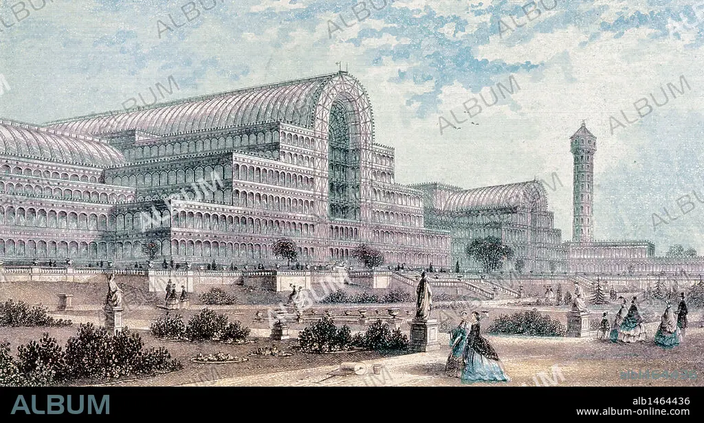The Crystal Palace. Cast-iron and plate-glass building originally erected in Hyde Park, London for Great Exhibition of 1851. Designed by Sir Joseph Paxton (1803-1865). Victoria and Albert Museum. England.
