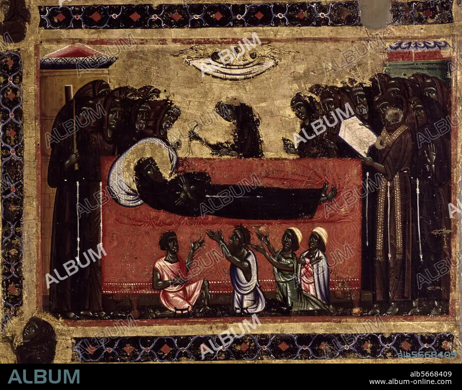 Caption: Bonaventura Berlinghieri (attributed to). active 1228-1274. "The Death of St. Francis". Detail of the alter panel depicting scenes from the life of St. Francis. On wood. Florence, S. Croce (Bardi-Chapel). (Photo: Stefan Diller).