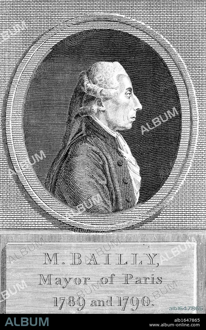 Caption: Jean Sylvain Bailly (1736-1793) French astronomer and politician. President of National Assembly Mayor of Paris 1789-90. Guillotined in French Revolution. Copperplate engraving.