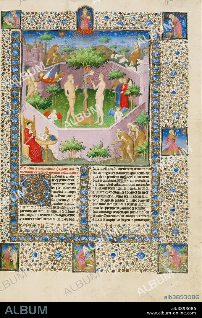 Caption: The Story of Adam and Eve. Date/Period: Ca. 1413 - 1415. Folio. Tempera colors, gold leaf, gold paint, and ink on parchment. Height: 420 mm (16.53 in); Width: 296 mm (11.65 in).