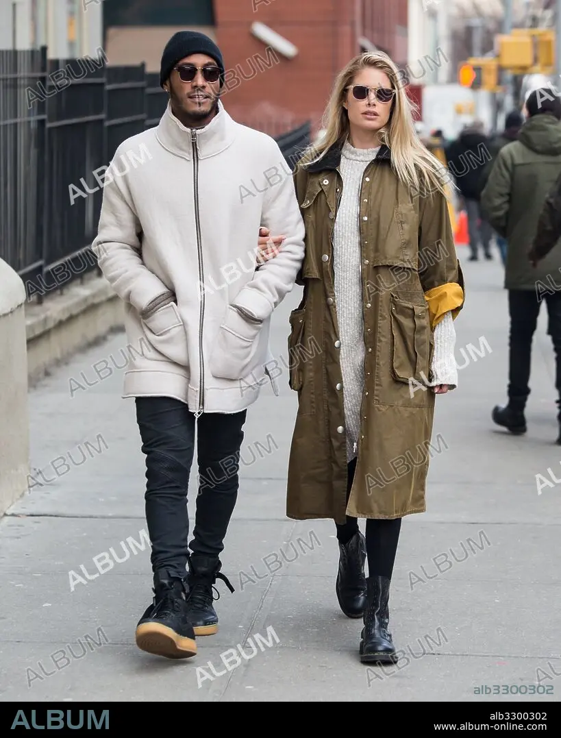 Caption: February 14, 2017 - New York, New York, United States - Model Doutzen Kroes and her husband Sunnery James walks in Soho on February 14 2017 in New York City.