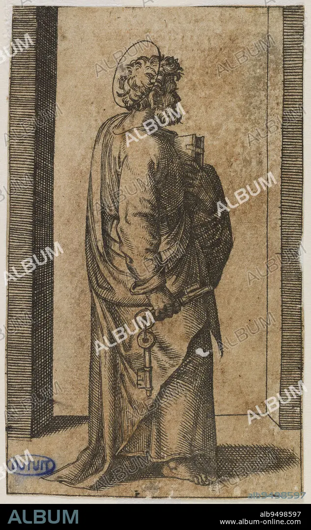 Caption: Jesus Christ and the apostles, Saint Peter. Second number of a suite of 13 pieces, part 1), page 163), Raimondi, Marc Antoine, Engraver, 16th century, Graphic Art, Print, Original Etching, Etching, Burin, Height: 8.2 cm, Width: 5 cm
