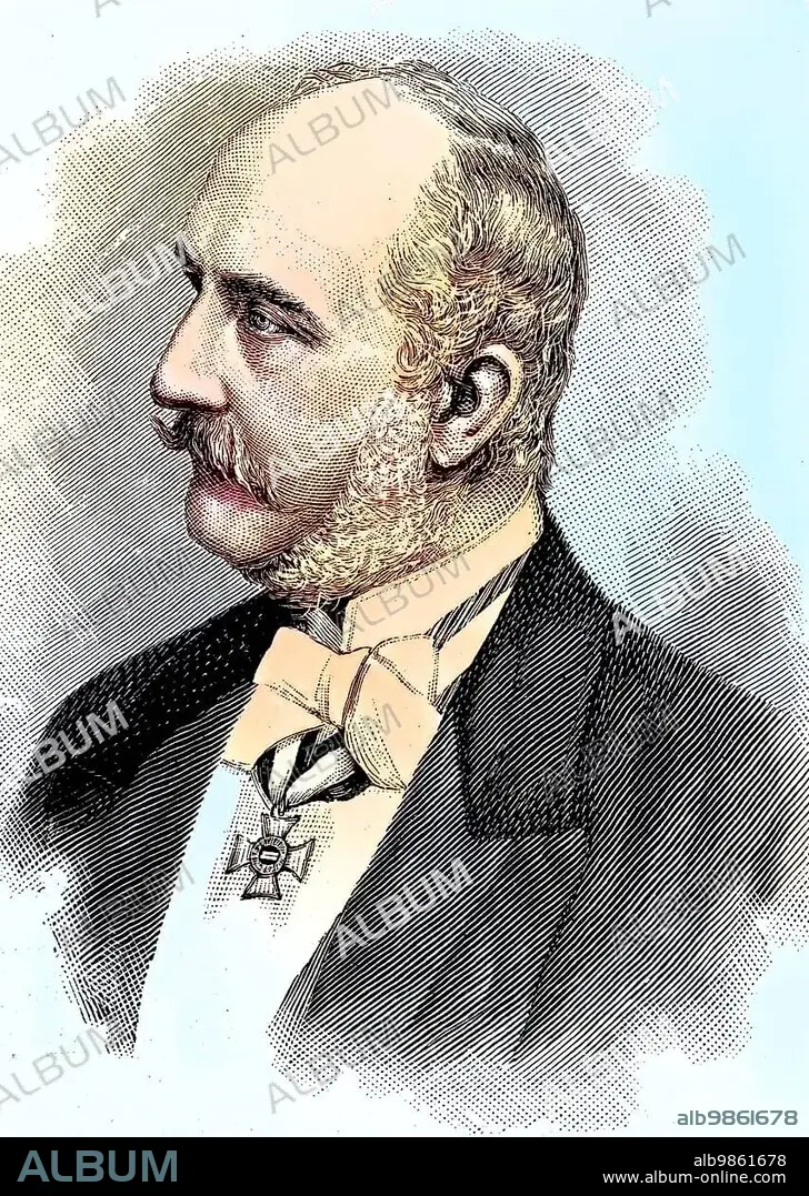 Caption: Portrait of George V, George Frederick Alexander Charles Ernest Augustus, in German Georg Friedrich Alexander Karl Ernst August, 27 May 1819, 12 June 1878, was the last King of Hanover, digital improved reproduction of an original print from the 19th century