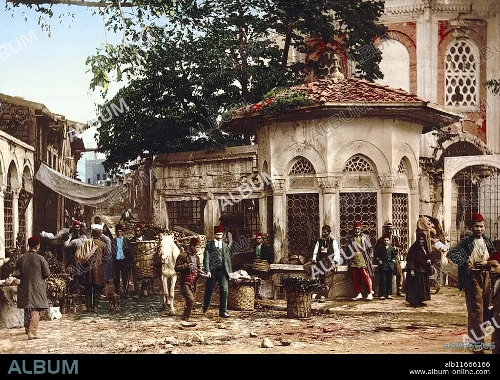 Caption: Koca Sinan Pasha complex in Fatih, Istanbul, with a sebil (fountain) and the tomb of the Ottoman architect Sinan (ca. 1489/1490-1588), View from 1885, Historical, digitally restored reproduction from a 19th century original, Record date not stated