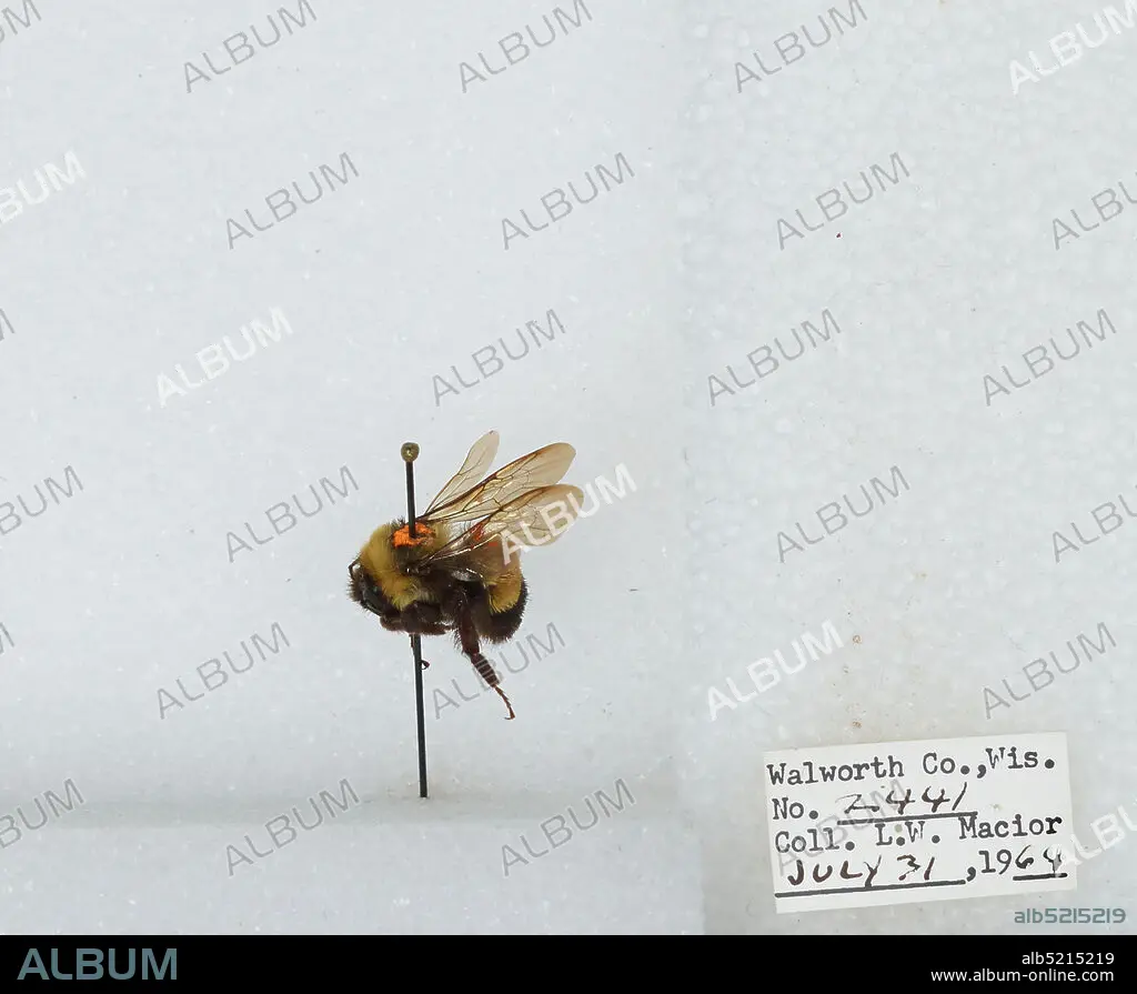 Caption: Walworth, Wisconsin, United States, Bombus (Bombus) affinis Cresson, Animalia, Arthropoda, Insecta, Hymenoptera, Apidae, Apinae