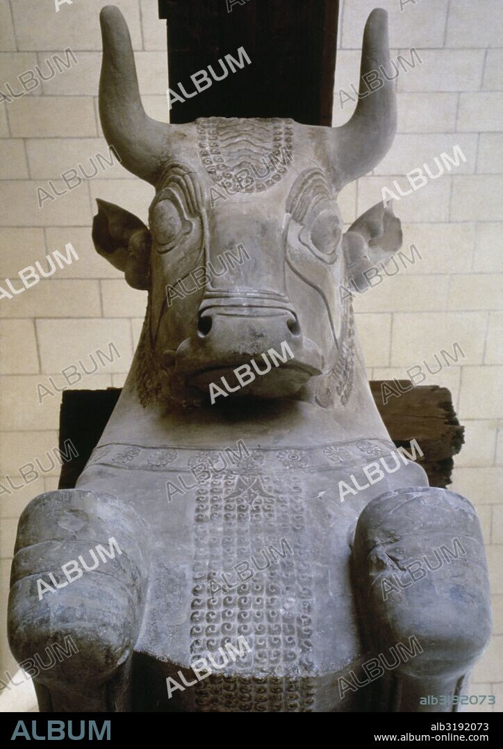 Bull capital of a column from audience hall of the Palace of Darius I. Apadana. Susa. Iraq. Achaemenid Empire. Near Eastern, c. 510 BC. Louvre Museum. Paris, France.