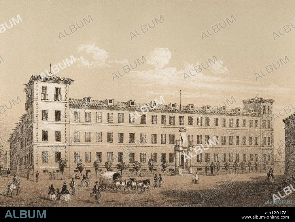 Antiguo Seminario de Nobles, posteriormente transformado en Hospital Militar. Grabado de 1870.