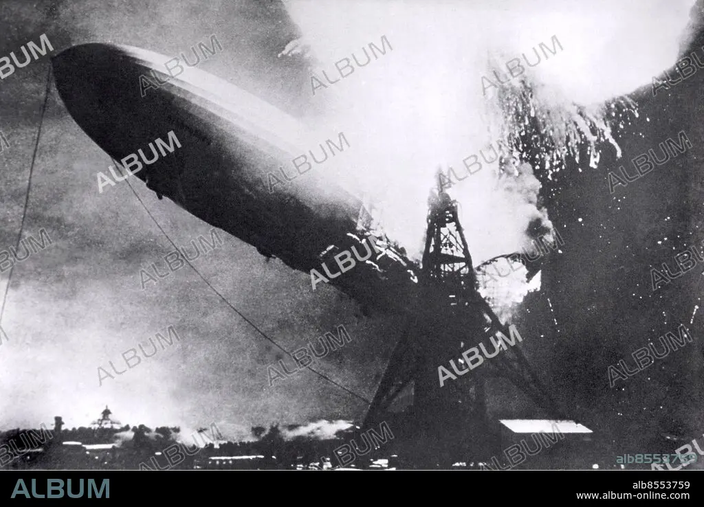 ©SCANPIX SWEDEN, 1937-05-06. Luftskeppet Hindenburg kraschar. När Hindenburg kom till USA från Europa kolliderade det vid landningsplatsen i Lakehurst, New Jersey och i katastrofen omkom trettio människor.. Foto: Scanpix. Code: 20360. ***. ENGCAP: The dirigeable Hindenburg- comming to USA from europe on its inaughral flight. Just as the crowd below was chering the arrival the Hindenburg burst into flames an crashed with its passangers. Thirty of them were killed in the disaster.