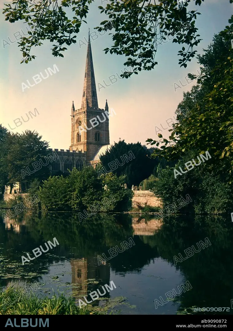 Holy Trinity Church, Stratford on Avon, Warwickshire - The Collegiate Church of the Holy and Undivided Trinity, Stratford-upon-Avon, is often known simply as Shakespeare's Church due to its fame as the place of baptism and burial of William Shakespeare. More than 200,000 tourists visit the church each year. The present building dates from 1210 and is built on the site of a Saxon monastery. It is Stratford's oldest building, in a striking position on the banks of the River Avon, and has long been England's most visited parish church. ©TopFoto