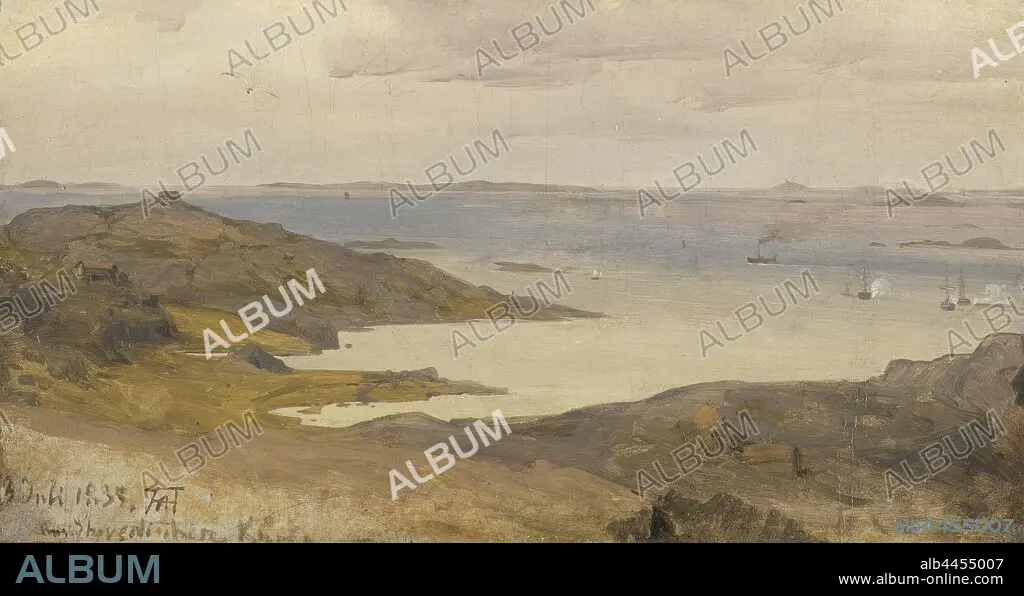 Caption: Andreas Achenbach, Motif from Bohuslän, Sweden, Study, painting, 1835, Oil on canvas mounted on cardboard, Height, 17.5 cm (6.8 inches), Width, 31.5 cm (12.4 inches), Signed, AA, overlapping, monogram, July 3, ..., Swedish coast