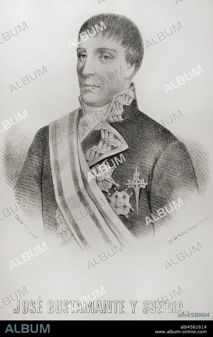 Caption: JosŽ de Bustamante y Guerra (1759-1825). Spanish naval officer and explorer. Lieutenant general of the Spanish Navy. Governor of Montevideo (1797-1804) and captain-general of Guatemala (1811-1818). Illustration by Llanta. Lithography. Cr—nica General de Espa–a, Historia Ilustrada y Descriptiva de sus Provincias. Castilla-La Vieja, 1870.