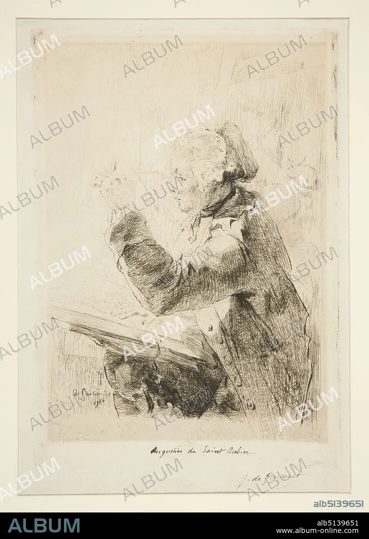 Caption: Artist: Jules de Goncourt, French, 18301870, Augustin de St. Aubin, Etching, sheet: 22.9 × 15.8 cm (9 × 6 1/4 in.), French, 18th century, Works on Paper - Prints