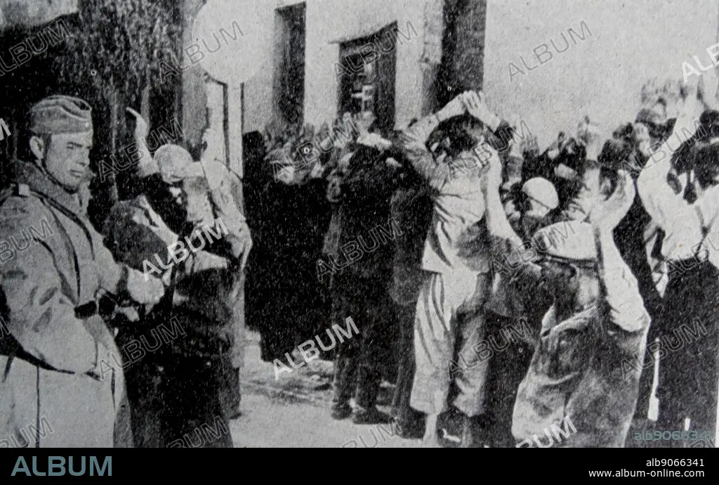 Caption: Photograph showing a Gestapo raid on the Warsaw Ghetto. The Gestapo agents of the Secret State Police search the inhabitants. Dated 1941.