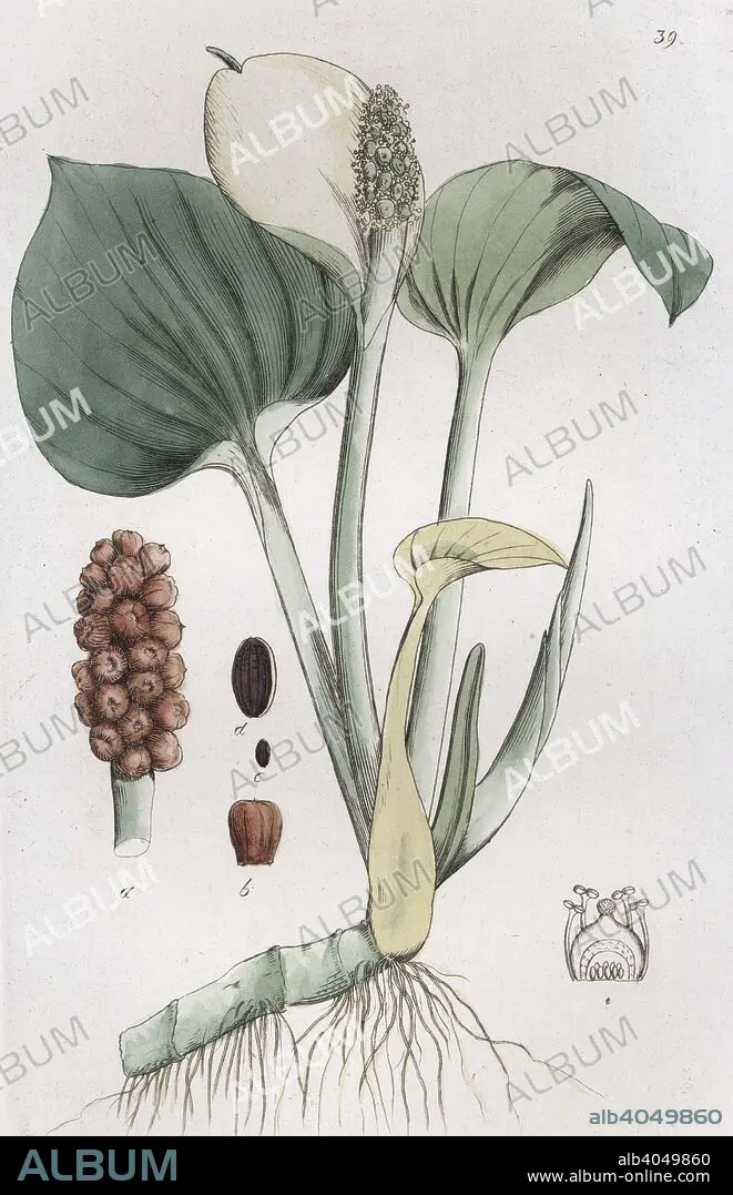 Caption: Bog Arum (Calla palustris), 1804-1811. From Svensk Botanik (Swedish Botany), 1804-1815. From the Landskrona Museum Collection.