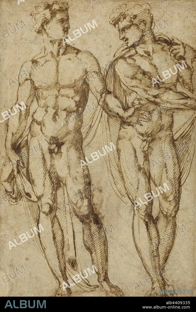 Study of Two Men (recto), Study of the Head of a Bearded Man (verso), Baccio Bandinelli (Italian, 1493 - 1560), Italy, about 1525, Pen and brown ink, 34 x 22.4 cm (13 3/8 x 8 13/16 in.).