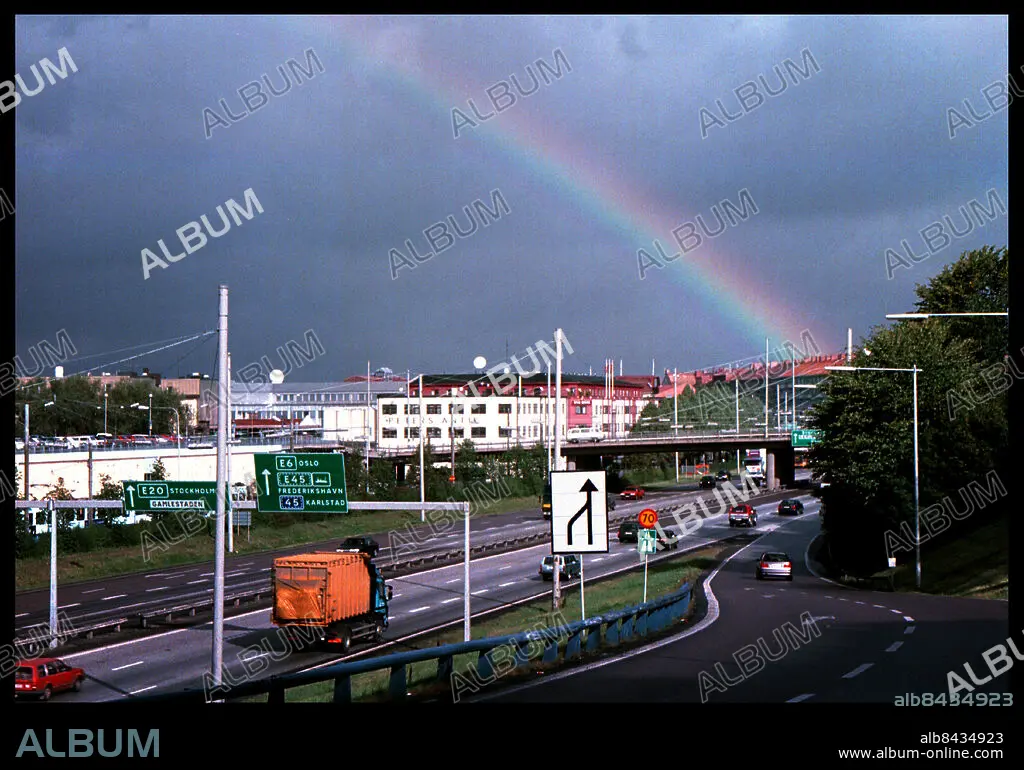 Gšteborg 990927-Ullevimotet i Gšteborg strax innan det bšrjar regna med regnbŒgen i bakgrunden.. VŠg, VŠgar, vŠgnŠt, bilar, regnbŒge, stadsmiljš.. Foto:Pontus Lundahl Kamerareportage. *** Local Caption *** . Pontus Lundahl
