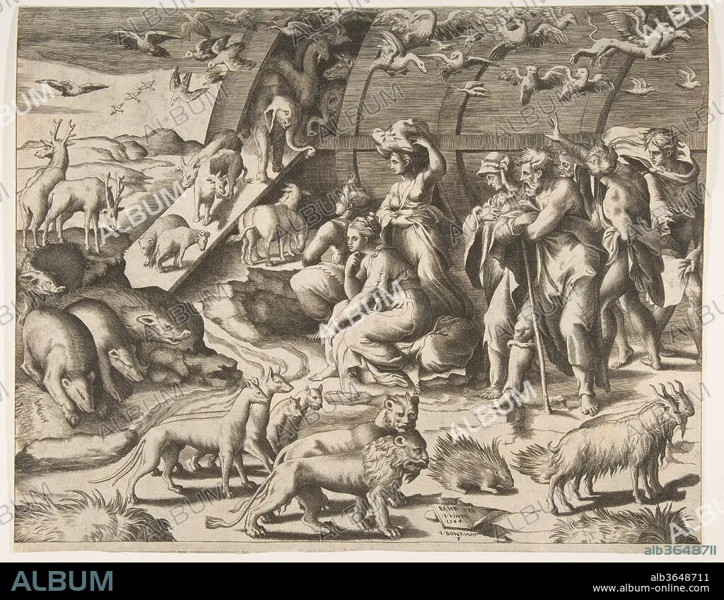 Caption: Noah leaving the Ark. Artist: Giulio Bonasone (Italian, active Rome and Bologna, 1531-after 1576). Dimensions: sheet: 12 x 15 1/16 in. (30.5 x 38.2 cm). Date: 16th century.