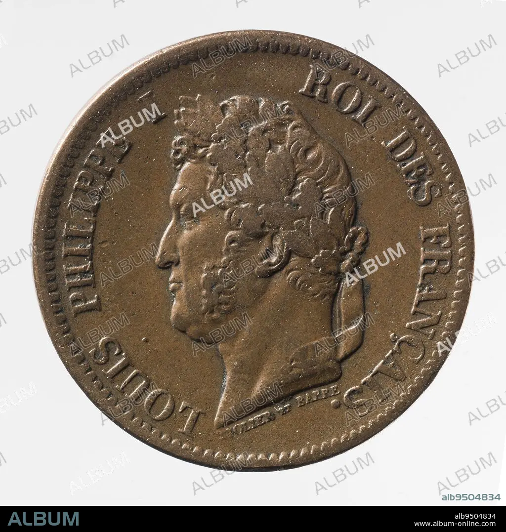 Caption: Coin of 5 centimes of the French colonies of Louis-Philippe, 1841, Tiolier, Nicolas-Pierre, Graveur en médailles, Barré, Array, Numismatique, Monnaie, Paris, Paris, Diameter: 2.4 cm, Weight (type dimension): 10.03 g