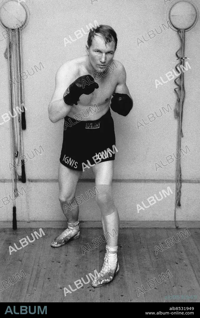 Göteborg 1965-11-09. Boxaren Bosse Högberg tränar med förre boxaren Henry Hallberg *** Local Caption *** GT blad 27 december 1965. KAMERAREPORTAGE